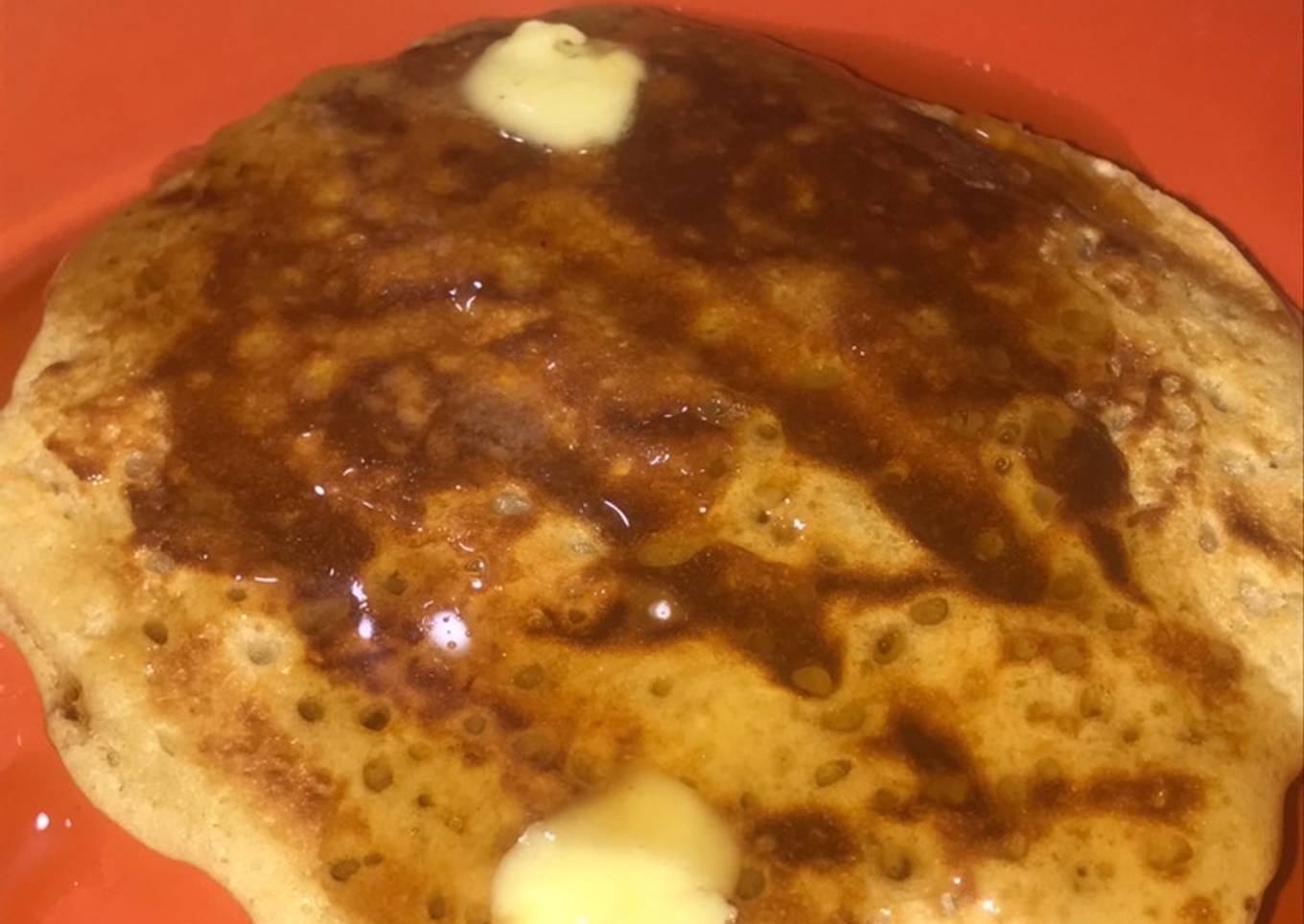 - Cuando ya estén listos, poner mantequilla o margarina para que no se sequen. Lo que usé para que quedara rico, miel de maple o jarabe de maíz. También puedes poner plátano en rodajas o helado💕👀