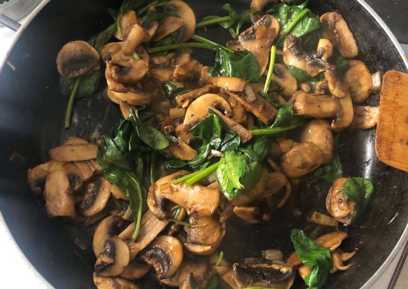 - Poner champiñones con las pizcas de sal, ajo y pimienta