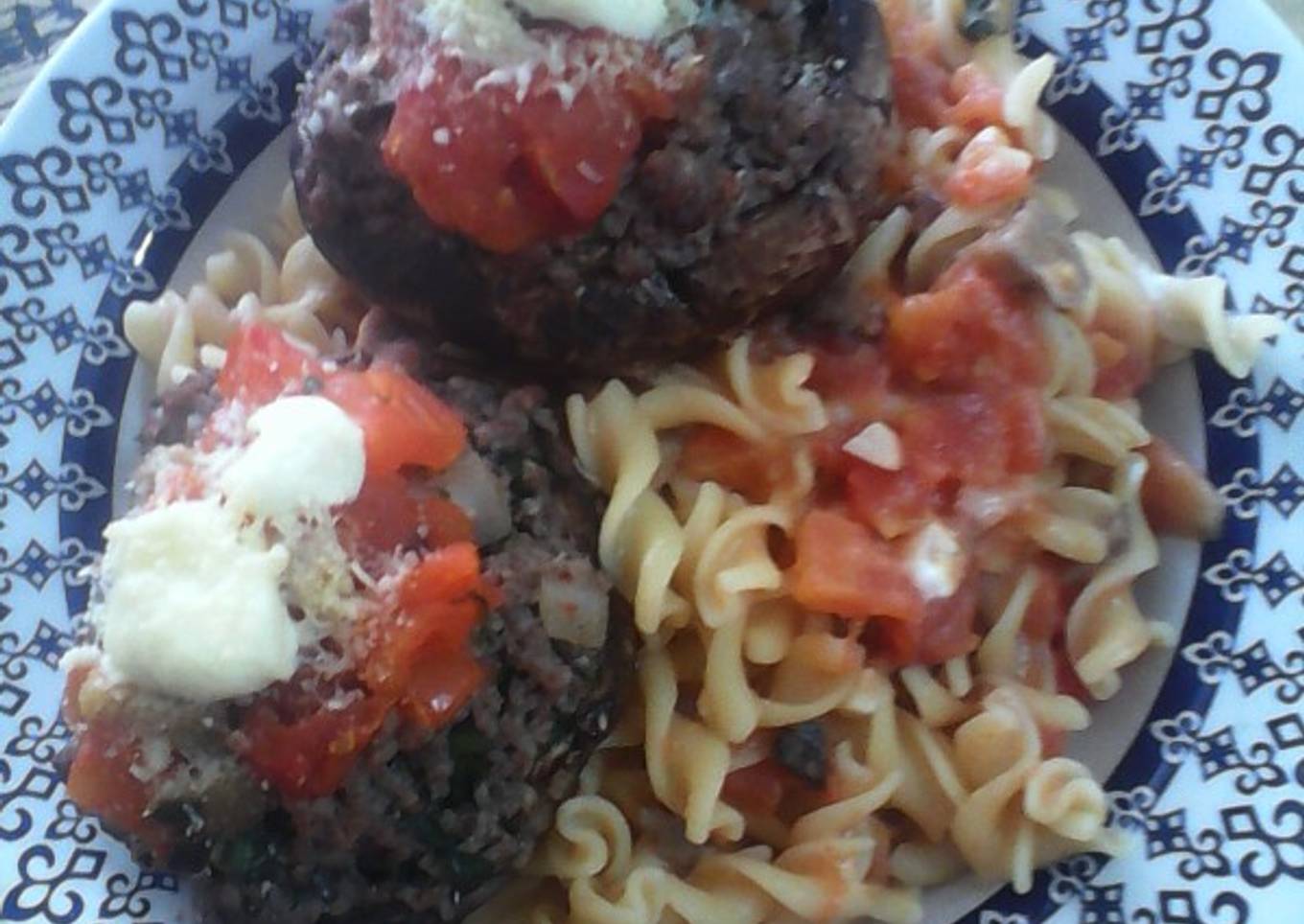 - Mezclar la carne con los condimentos y el ajo rallado. Hacer bolitas y rellenar los portobellos