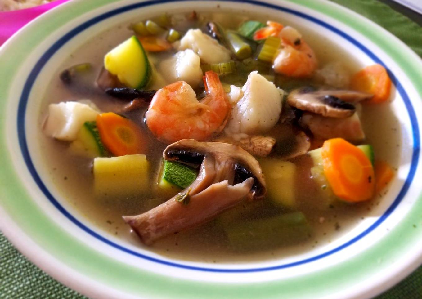 - Agregamos el pescado en trozos más o menos grandes y el camarón, le agregamos el orégano, sal. El tiempo de cocción del pescado y el camarón es súper rápido, cuando esté cambié de color ya esta.