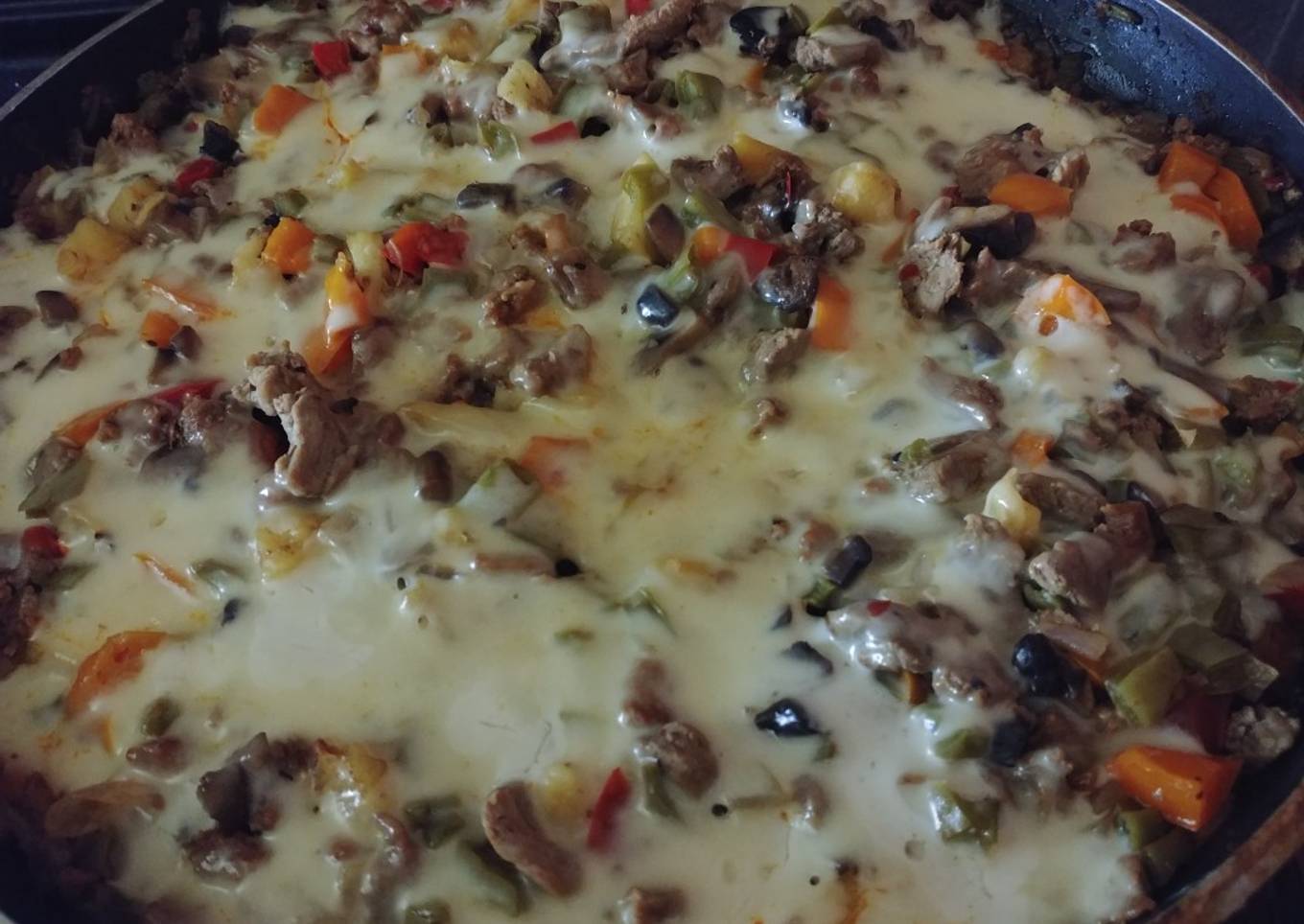 - Pasado el tiempo de cocción, agrega el queso oaxaca desmenuzado sobre la preparación, tapa el sartén y deja que se funda el queso y ya listoo!!!!! Disfrutalo