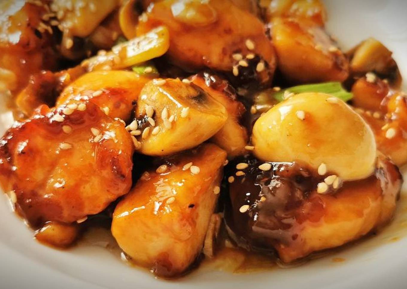 Pollo con Champiñones en salsa de ostras