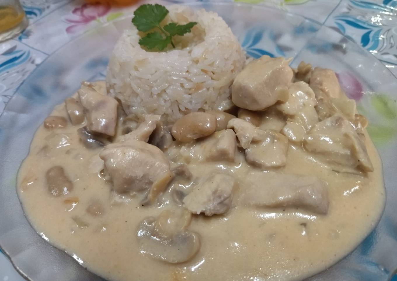 Instructions to make to make STROGONOFF de pollo con porotos y champiñones