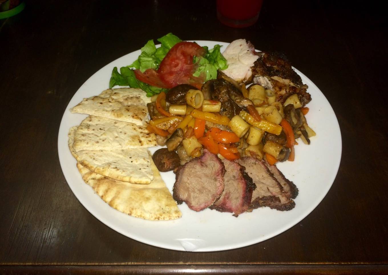- EL plato se acompaña con arroz blanco, Baguete francés o Pan Pita pasado por las brasas como esta ocasión.