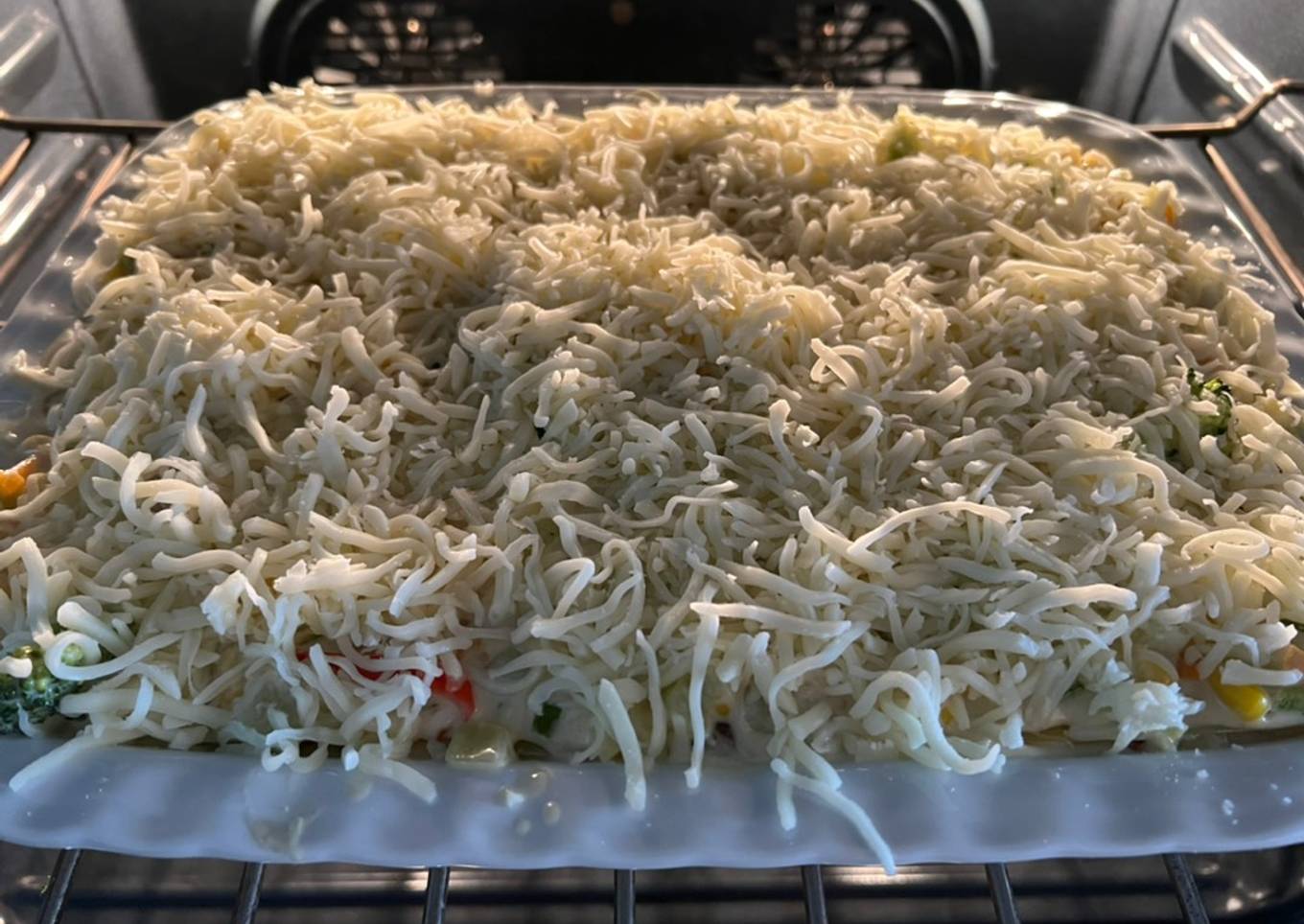 - Por aparte en un Pyrex rectangular coloco salsa, luego una capa de pasta, salsa con queso y otra capa de pasta hasta llenar el Pyrex, tomando en cuenta que la última capa debe de ser salsa con queso mozzarella. Aclaro que la pasta que utilizo es precocida, por lo que no requiere hervirse aparte, se pone así y la misma salsa la cocina durante el tiempo en el horno