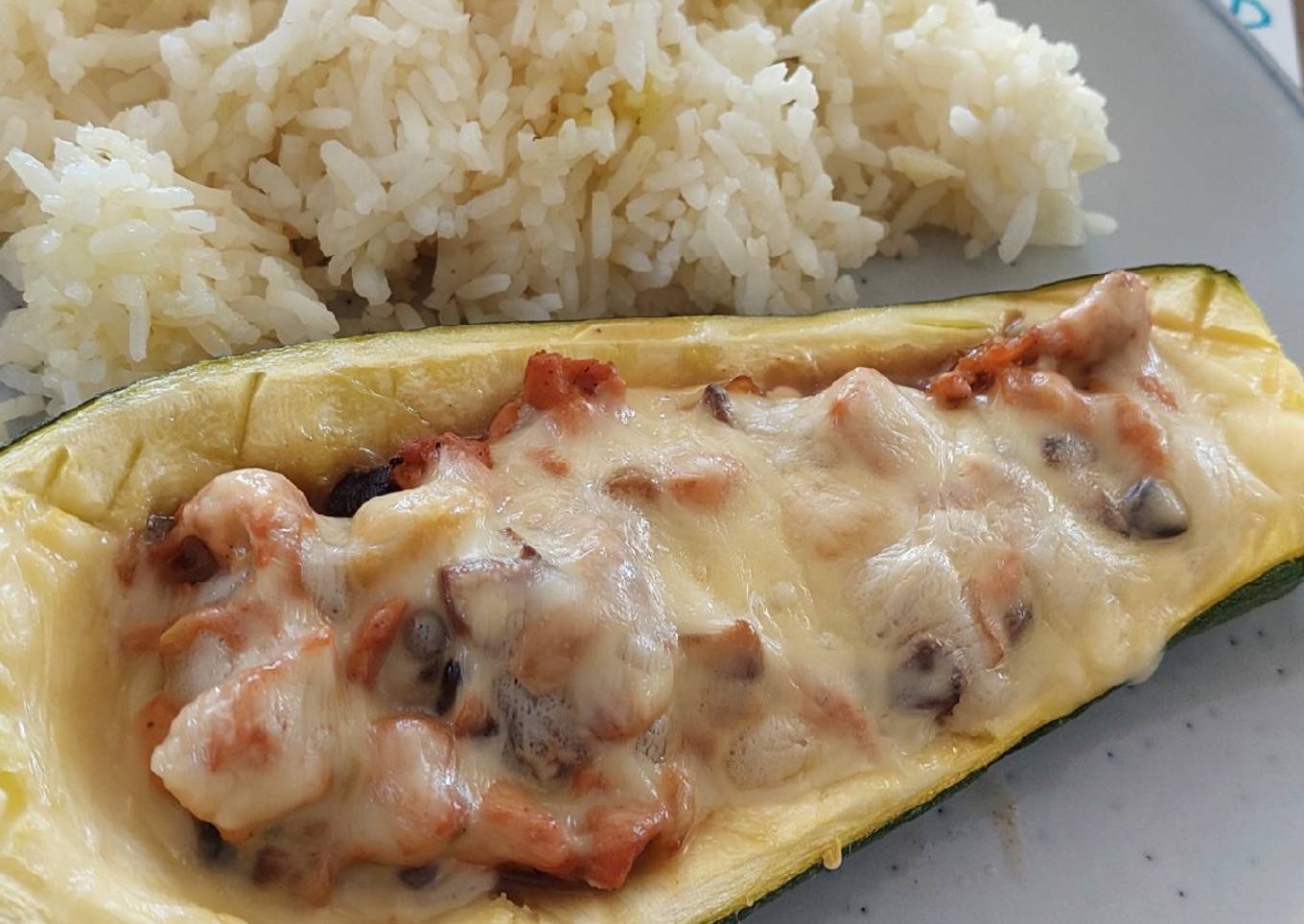Zapallito Italiano relleno con Pollo al chipotle y champiñón