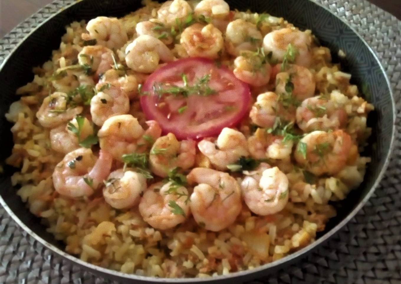 - Ya! Por último Se sirve el arroz con unos camarones de adorno. Para que disfrutes de esta receta sabrosa.😋. La puedes acompañar con una ensalada verde y papas a la francesa...