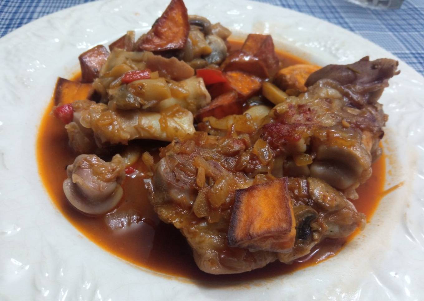 Hello everybody, it is Drew, welcome to my recipe site. Today, I'm gonna show you how to make a distinctive dish, Pies de cerdo con champiñones y boniato. It is one of my favorites food recipes. For mine, I will make it a little bit unique. This is gonna smell and look delicious.